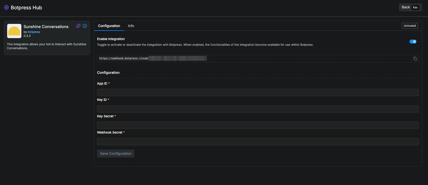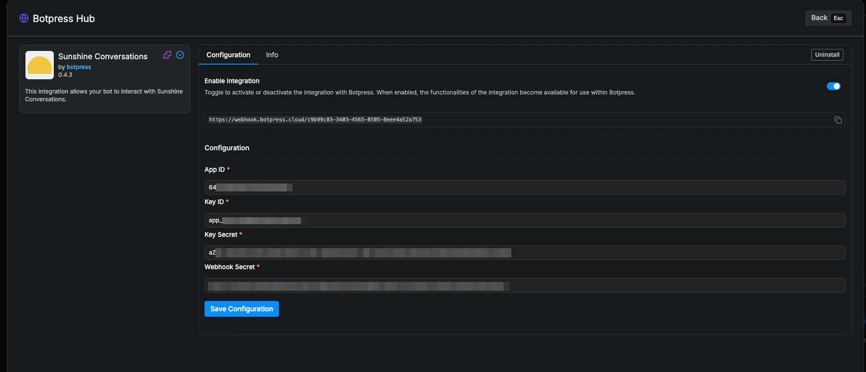 • Webhook URL: The URL for receiving data in Botpress (Copy this)