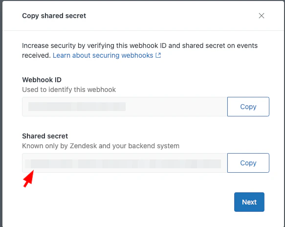 • Webhook Secret: The Webhook Secret of your Zendesk Conversation Integration Webhook