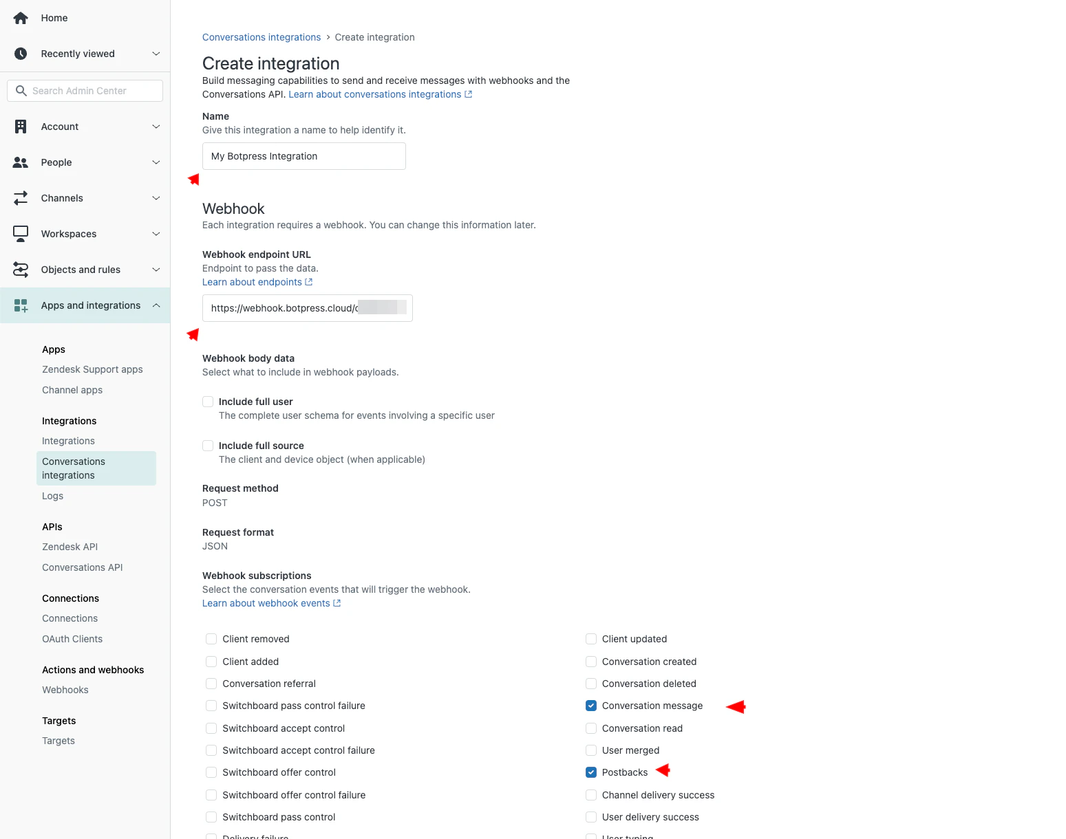 You can also use the Sunshine Conversations integration to connect Botpress to Zendesk Messaging.