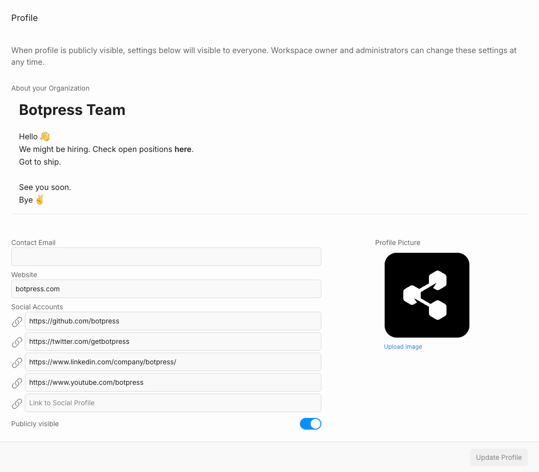 Your workspace profile on Botpress Hub